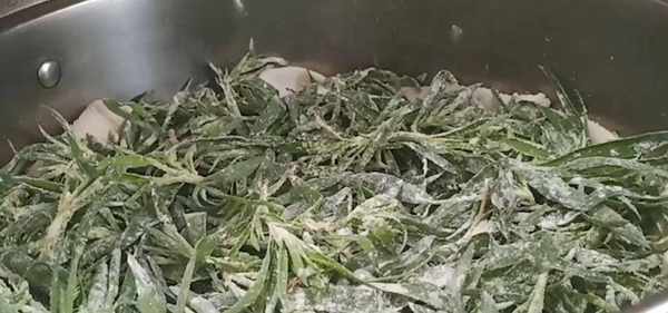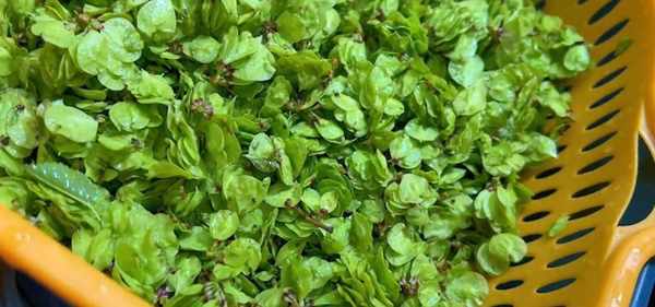 1、掃帚苗把葉子摘下來。倒在一個大盆裡泡五分鐘,再用清水沖洗幾遍,洗完之後稍微控一下水分。