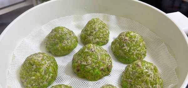 3、放在蒸屜上,這種野菜比較容易熟,不要蒸太久,蓋上蓋子,大火蒸五分鐘。