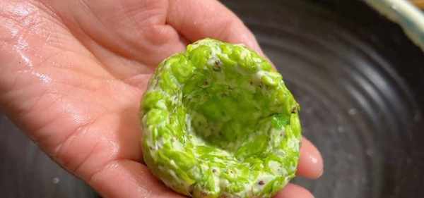 3、接下來揪一塊,先揉成一個圓球。然後中間再掏一個窩窩,全部都做好瞭。
