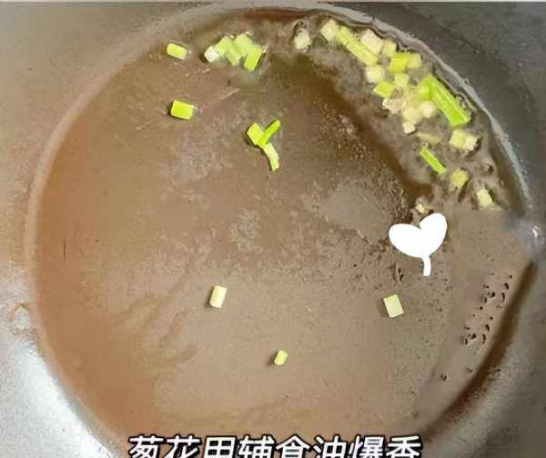 5:鍋底調入一些橄欖油,加上蔥花和薑末,迅速將其爆香,倒入適量開水煮沸,倒入一些蘑菇煮一小會兒。