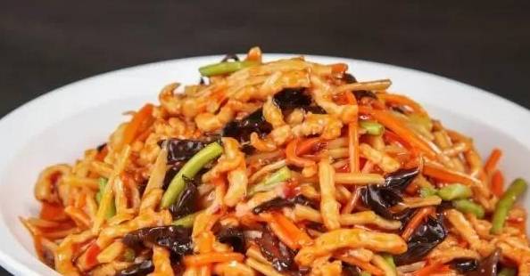 【食材】:豬裡脊、泡發黑木耳、胡蘿卜、青椒、蔥薑蒜末