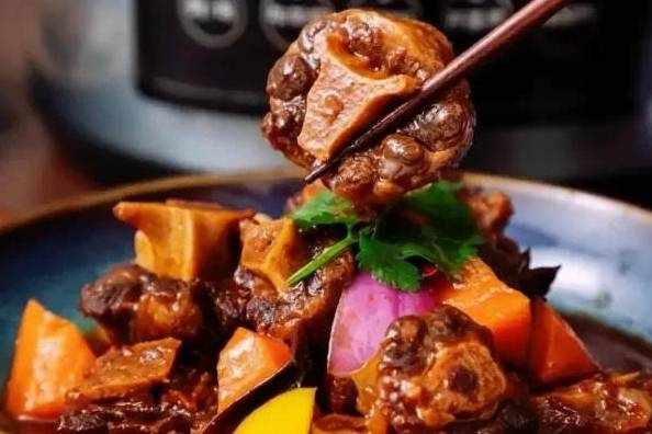 食材以及調味料的準備:牛尾,洋蔥,胡蘿卜,彩椒,香料(八角、桂皮、香葉、草果、甘草),生薑,小蔥,料酒,黃豆醬,豆瓣醬,南乳,冰糖,生抽,老抽,啤酒。