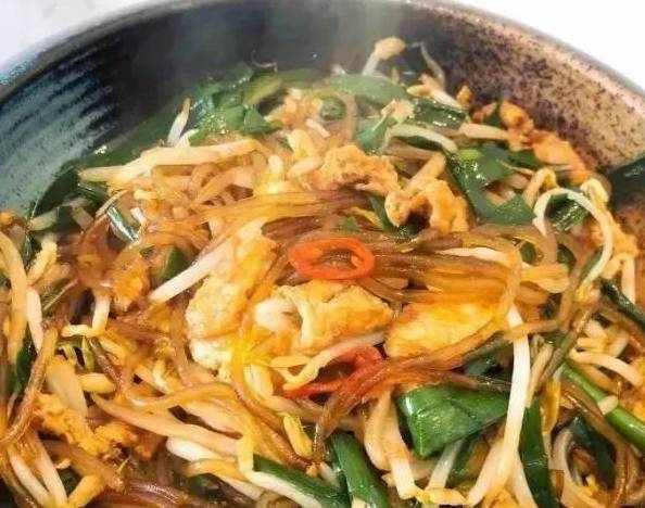 韭菜豆芽炒粉絲雞蛋【食材】:雞蛋,粉絲,韭菜,豆芽,幹辣椒,大蒜