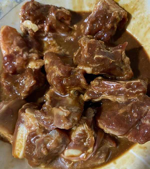 準備食材:芋頭、排骨、蠔油、醬油、老抽、料酒、蒜、淀粉