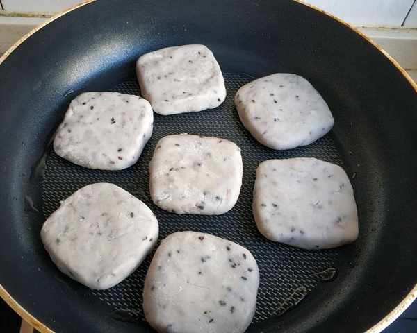 準備食材:芋頭、糯米粉、黑芝麻、白糖、食用油