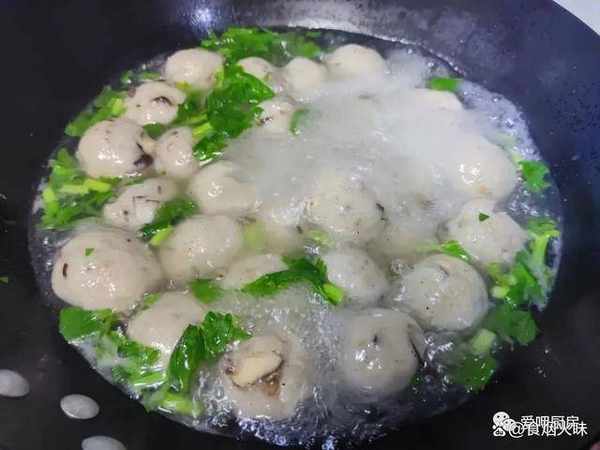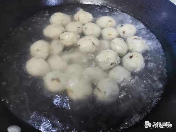 6.鍋中的芋艿煮熟之後它會浮到表面上面來,煮好之後加入適量的食鹽跟芹菜葉,然後用勺子將它們攪拌均勻,攪拌好後試一下味道,可以的話我們就關火出鍋。很快,這樣子一份芋艿丸子就出鍋瞭。這樣做出來的芋艿軟糯Q彈而且特別的爽口。