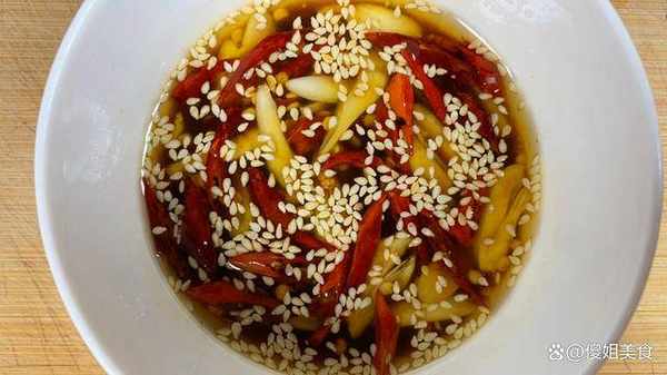 3、調料汁的時候可根據自己的口味甜咸辣,我們全傢人比較喜歡吃辣,所以放的辣椒就多一些。把適量的幹辣椒表面清洗幹凈後斜刀切成小段裝入碗內,再準備適量的大蒜也斜刀切成小塊,先用熱油澆在辣椒上,把它炸出香味,之後放入2勺陳醋、少許味極鮮、1勺蠔油、多半少白糖、鹽、白芝麻攪均勻即可。