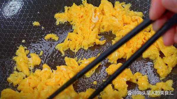 6.兩個雞蛋攪散,倒入鍋中炒散炒熟。
