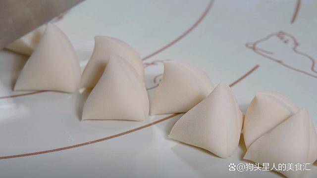 10.醒好的面團不用揉直接搓成長條,再把它分成小面劑子。跟平時做餃子皮大小就可以瞭。