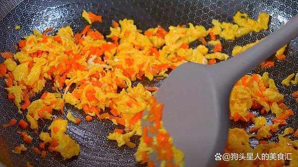7.再倒入切碎的胡蘿卜,翻炒幾下,翻炒均勻。盛出來備用。