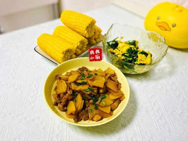 錯過買菜時間也就懶得下去瞭。正好中午還有多出來的菜,湊合湊合吃也是可以的。晚餐的話孩子也不太挑瞭。中午的菠菜還多出來一些,正好晚上準備涼拌一下,土豆原本打算炒個土豆絲的,但一想孩子不太喜歡吃土豆絲,就臨時決定用一點肉炒個土豆片好瞭。