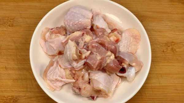 具體步驟:1、買回的雞腿放到案板上剁成小塊,放入盆中加入清水浸泡一會兒。案板上切些蔥薑蒜備用。