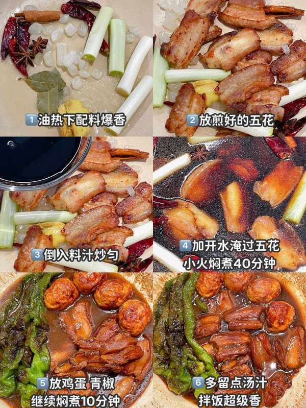 接著將醃制好的肉塊和豬蹄筋放入鍋中,加入清水,大火燒開後改小火燜煮1-2小時。最後將鍋中的湯汁熬濃,淋在把子肉上即可。