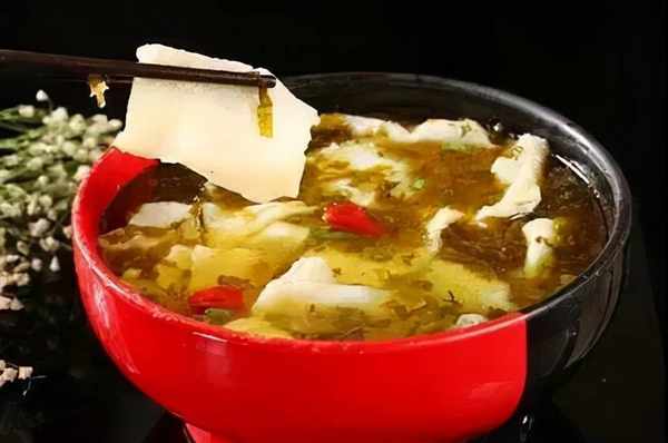 吃上一口玉米攪團,裹上酸菜熬制的湯頭