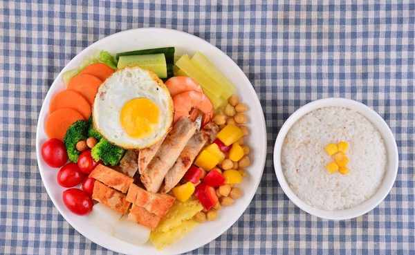 主食中的膳食纖維是能延長飽腹感的,可以搭配著吃,比如雜糧粥、雜糧饅頭等。