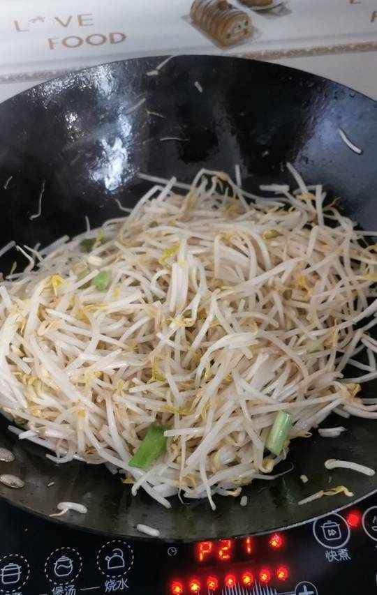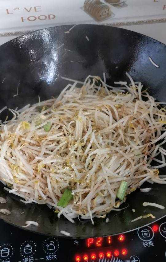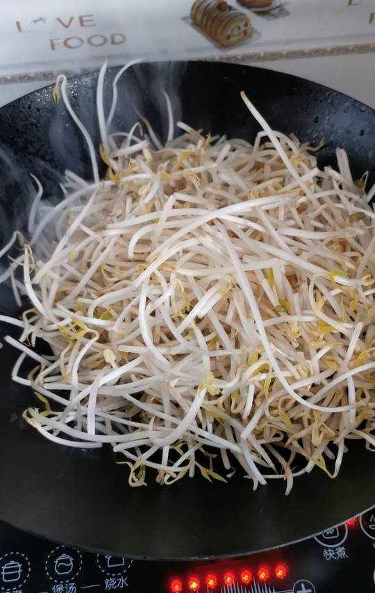 2.倒入洗凈的綠豆芽。