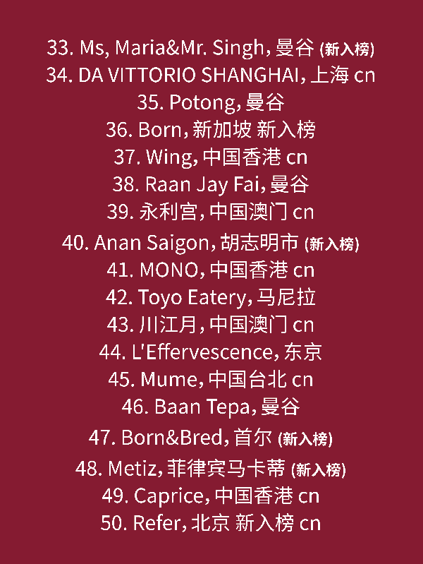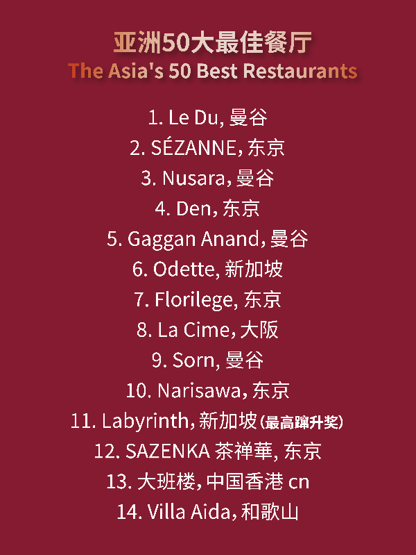 原標題:2023“亞洲50大最佳餐廳”榜單揭曉!