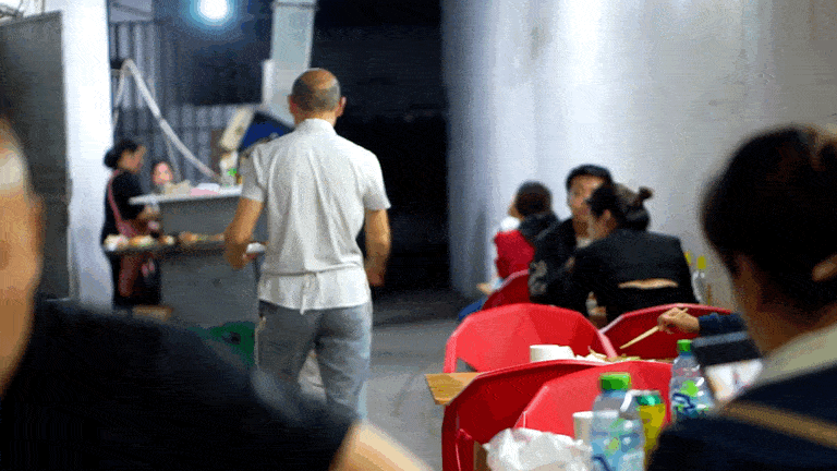 老板叔叔右手不太好,負責穿菜、端菜、收拾桌子、招呼客人這些事。