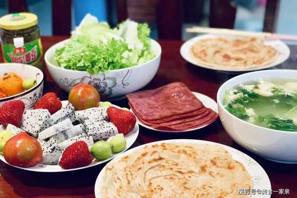 我這個是網購的手抓餅,味道和口感還不錯。不過要註意這種手抓餅本身含油量不少,不粘鍋不放油,直接將手抓餅放下去煎就可以。將手抓餅煎到兩面微微金黃,即可鏟出。接著再刷上一層薄油,煎個雞蛋和火腿片就可以。生菜要新鮮的,這樣吃起來才會口感清爽,要提前洗幹凈瀝幹水再食用。然後手抓餅、生菜、火腿片這樣疊起來,抹上一點黃豆醬,卷起來就開吃啦!喝著熱乎的湯,吃著美味可口的手抓餅,感覺特別舒爽。