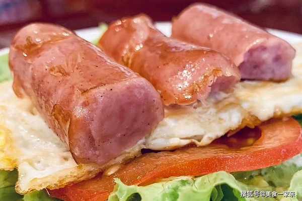 我特別喜歡吃熱狗腸,飽滿的肉感很有嚼勁。咬一口下去,香油和肉汁流溢出來,唇齒留香。吐司片加生菜、番茄片、煎蛋,最後放上煎得香噴流油的熱狗腸(切對半)。不需要在意造型,隨意用底下的吐司片將全部食材卷起來,大口大口地吃。熱牛奶配三文治,感覺就是棒棒噠!