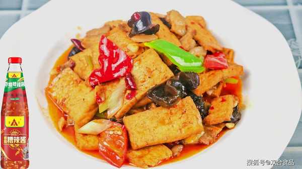 3.倒入辣椒、紅蘿卜、黑木耳煸炒一下;倒入炸好的水豆腐,再次煸炒;放鹽調料;放入生抽上色;煸炒至熟,倒入水淀粉勾芡,隨後起鍋;傢常豆腐就行瞭;