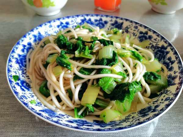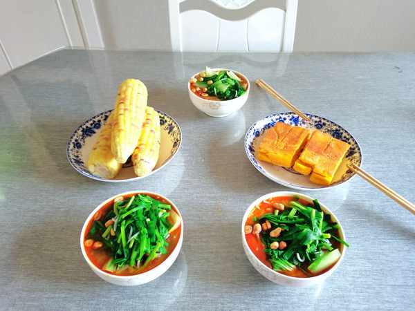 拿一把粉條用開水泡上,小白菜清洗幹凈焯水,擠掉多餘的水分切段裝盤,放上泡軟的粉條,放上剁好的蒜末,撒半勺鹽、幾滴味極鮮、兩勺香醋,然後澆上熱花椒油,攪拌均勻,就可以享受美味瞭。