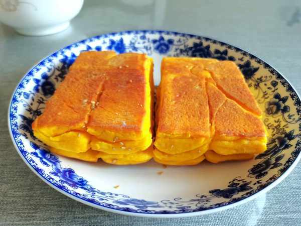 南瓜泥、雞蛋、發酵粉和面,發酵後卷上油酥,放烤箱150度烤20分鐘,出爐後外皮香酥,裡面酥軟,特別好吃。
