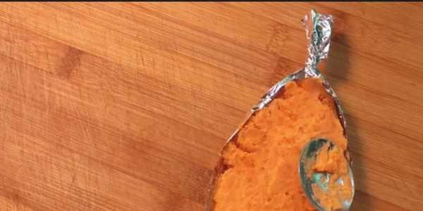 4.兩頭捏緊,讓錫紙包裹住紅薯,整理服貼