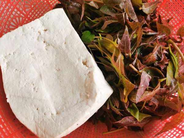 香椿芽,老豆腐,辣椒面,鹽,食用油