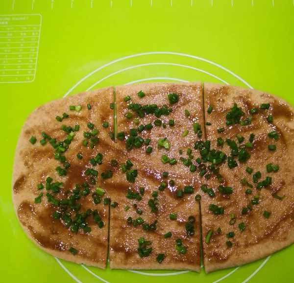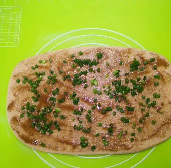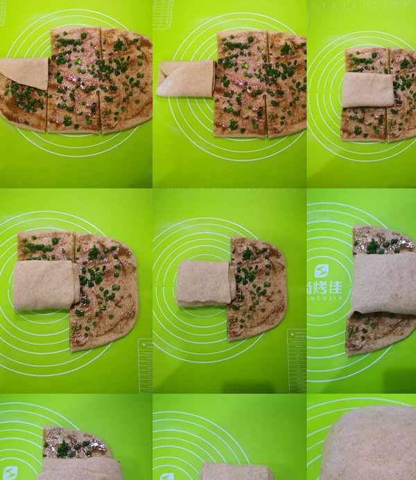 均勻地抹上油酥,再撒上蔥花。