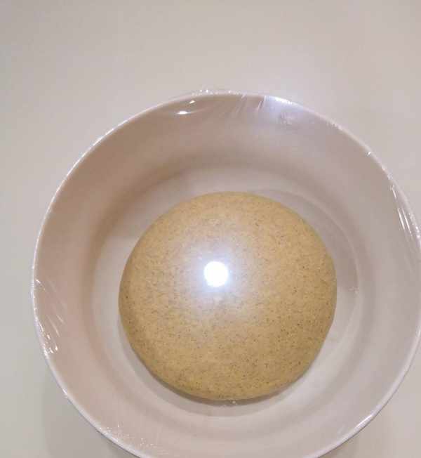 用酵母水和面,並揉成軟硬適中的面團,蓋上保鮮膜,發酵至兩倍大。