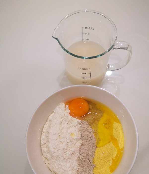 加個雞蛋,增加蓬松度,酵母放溫水裡化開。