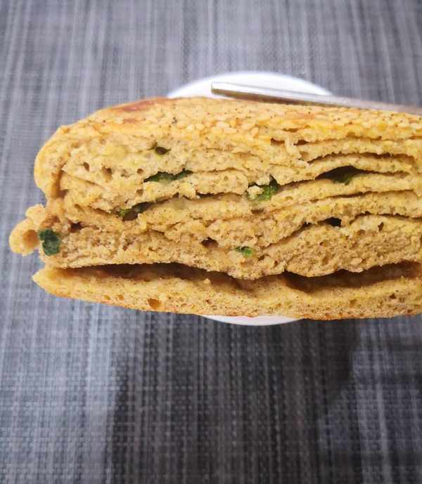 今天的早餐主食是我愛吃的蔥油餅,用發面做,松軟好消化;加點粗糧,營養又飽腹!