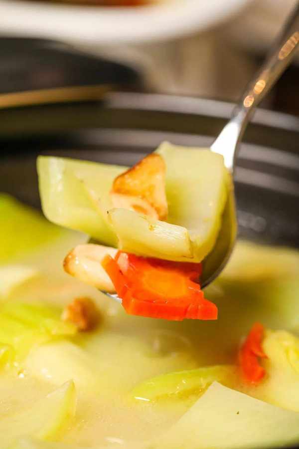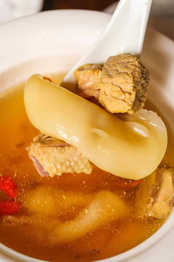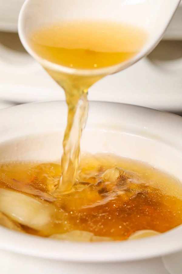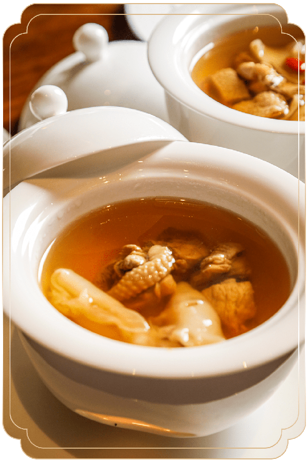 幾乎不加任何調味,純靠花膠、蟲草花、土雞進行小火慢燉,每一勺裡都是滿滿的精華!一口下去,鮮美澄澈口齒回甘~