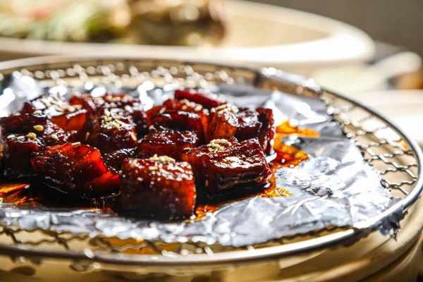一頭豬僅能出6份,才能得到這份外皮酥脆,肥瘦相間且不油膩的極品黑叉燒!