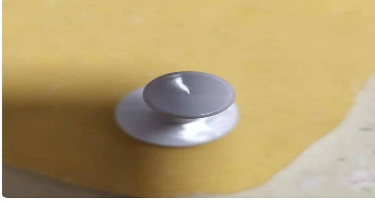 第3步:黃色面團搟成5厘米厚度,用橢圓形模具壓出形狀。