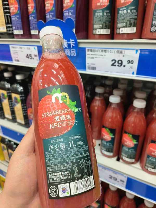在麥德龍雨花商場,記者向商場負責人瞭解到,春天到瞭,麥臻選系列的NFC果汁非常受歡迎,“例如這款新鮮草莓汁配料100%草莓汁,沒有額外添加糖。傢長完全不用擔心小朋友攝入過多的糖分。”
