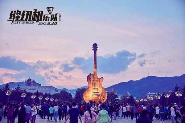 比如2017年,《縫紉機樂隊》上映,電影裡有一座大吉他雕塑,吸引許多觀眾到拍攝地打卡。
