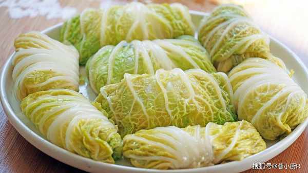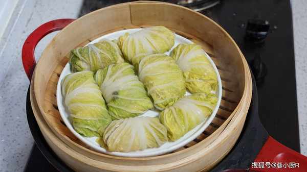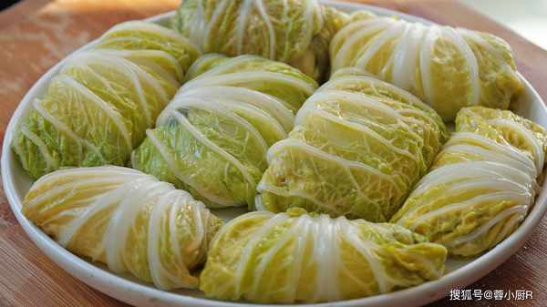 1、先來掰白菜,洗過後我們先來給它焯一下水,一分鐘就夠瞭,不要煮久瞭 ,撈出來再過一下涼水,等一下卷的時候會更好卷。