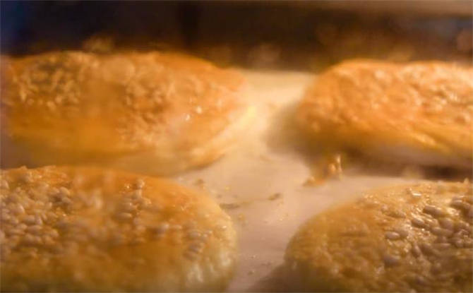 11.烤箱提前預熱好200度烤上15分鐘,烤好瞭把餅取出來。