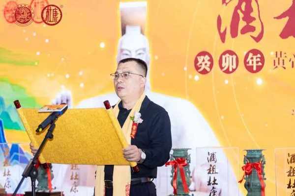 河南省酒業協會副會長、總工程師趙書民現場深情誦讀癸卯年《酒祖杜康拜軒轅黃帝文》。