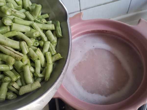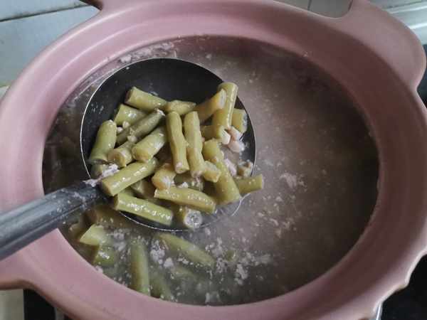 第五步:這時把豆角倒入,繼續燉大約15分鐘。