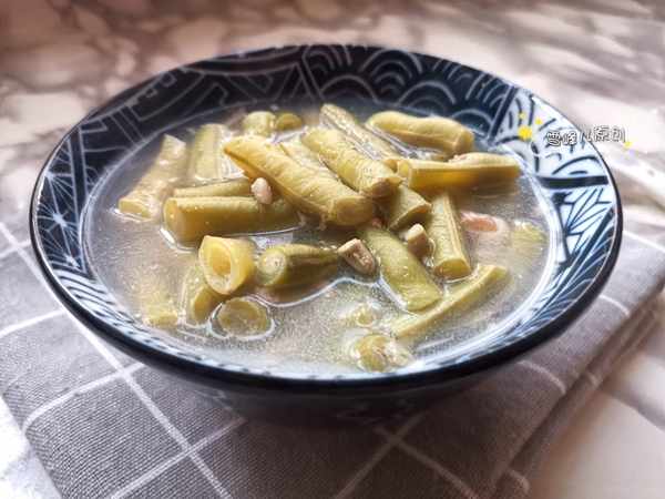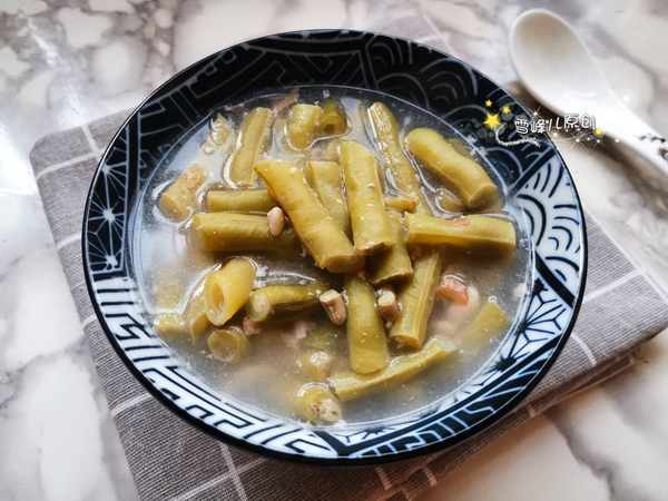 第六步:豆角熟透,關火,加少許鹽就可以吃了,再我們老家這個就是普通的稀飯稱它為"果仁豆菜"。