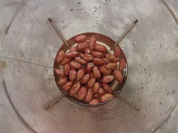 第三步:土豆洗淨放入料理機,加入適量的清水,攪打成細膩的花生汁。土豆含有油脂,油炸之後會燥熱,從健康角度來說,用水煮為最好,不溫不火、口感潮潤、入口好爛、易於消化,滋補養顏等老人孩子吃都適合。