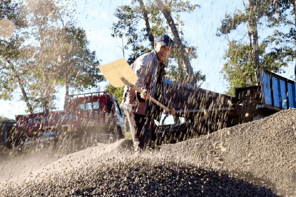 裝好後,逐一封口。整整齊齊的擺放在幹燥通風處。等汾酒公司的原糧運輸車將一袋袋豌豆運回公司後,這些豌豆便開始瞭它們新的使命。