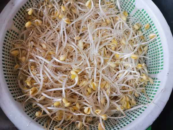 第三步:黃豆芽,買回來用清水浸泡清洗乾淨。黃豆芽是黃豆所泡,是較多蛋白質和維他命的來源,維他命主要有維他命B族元素和維他命C和E,微量元素主要為鈣,磷,鐵等,是我們常吃的一種芽菜,我們選擇豆芽的時候要選擇有根而且不十分胖壯的黃豆芽,回家浸泡洗淨。