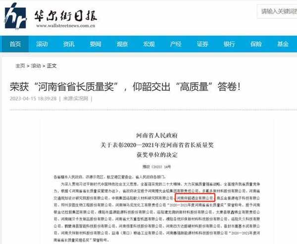 近日,河南省人民政府印發瞭《關於表彰2020-2021年度河南省省長質量獎獲獎單位的決定》,授予全省8傢單位河南省省長質量獎。其中,仰韶酒業集團赫然在列,榜上有名,是河南省唯一斬獲此類殊榮的酒企。