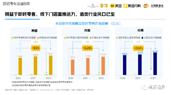 近日,糖酒會期間,美團閃送與全國糖酒商品交易會、華潤雪花、保樂力加中國共同發佈《 2023即時零售酒類白皮書》,即時零售指“想即買即飲”的消費。 白皮書顯示,過去三年,酒水品類在即時零售市場獲得高速增長,其中白酒市場規模增長554%,遠高於酒水品類大盤增長。 全國糖酒會組委會副秘書長周宗波表示,以美團閃購為代表的即時零售平臺,助力實體零售商及品牌商鏈接年輕消費者,帶來的是即時零售萬億賽道的酒類新機遇。
