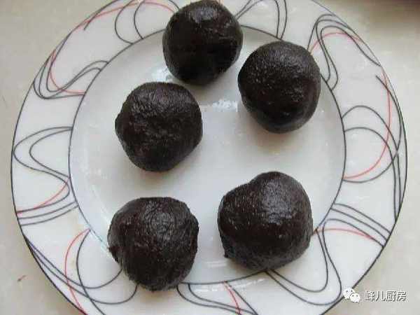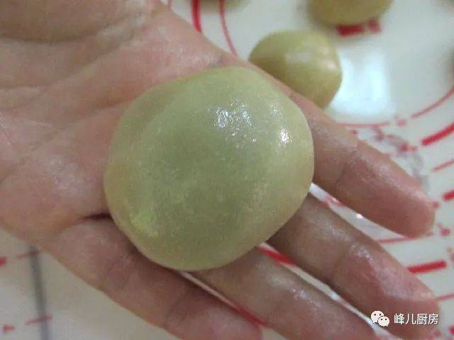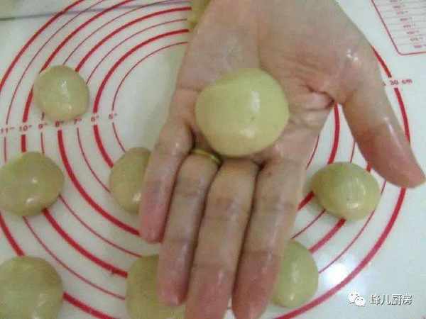 9、包入豆沙蛋黃餡。