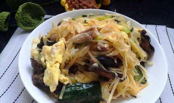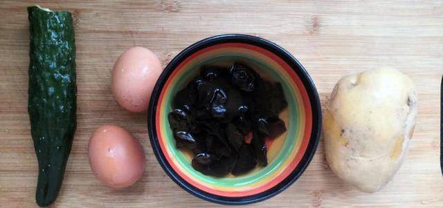 食材:黃瓜、土豆、木耳、雞蛋